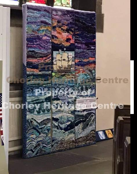 Attached are photos of a Standish Stitchers' woven panel, the 3 rag rugged Standish Stitchers' panels, and Chorley in Bloom's Mayflower. All are were displayed at St. Laurence's - added to our Myles Standish exhibition in August 2021