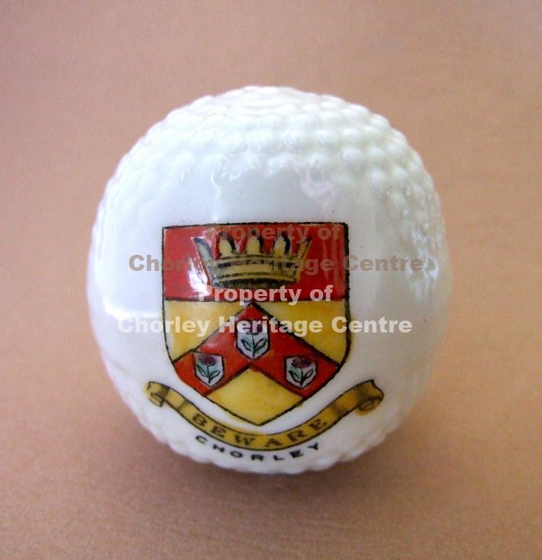 golf ball slightly flatened for base and dimpled as a real ball would be