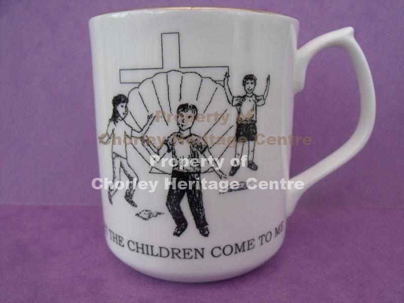 Picture of children dancing before cross with inscription "Let The Children Come To me". On backSt James Sunday School, Chorley, 2000